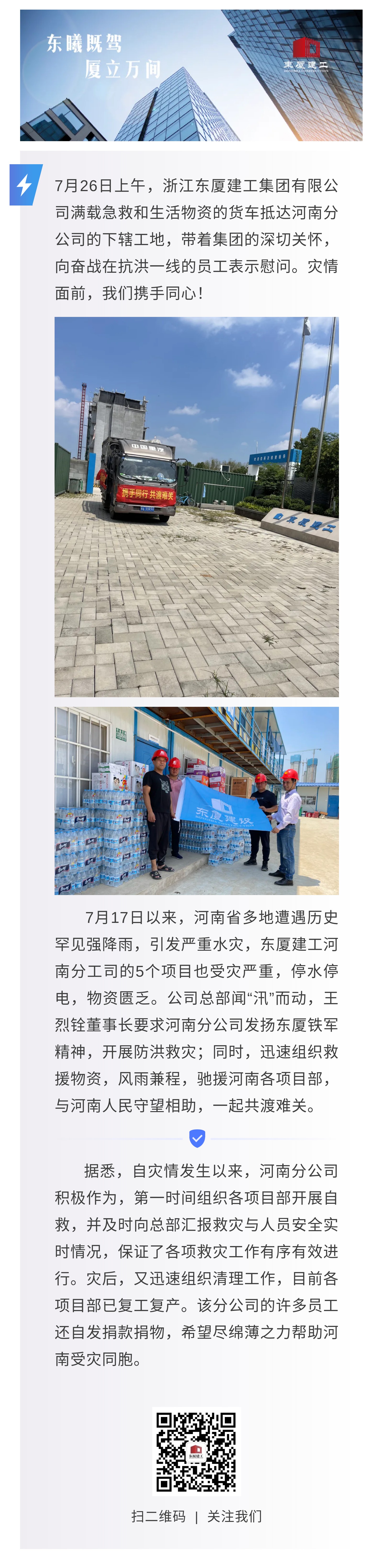 風(fēng)雨同舟 “豫”你同在|東廈建工籌集物資慰問河南分公司