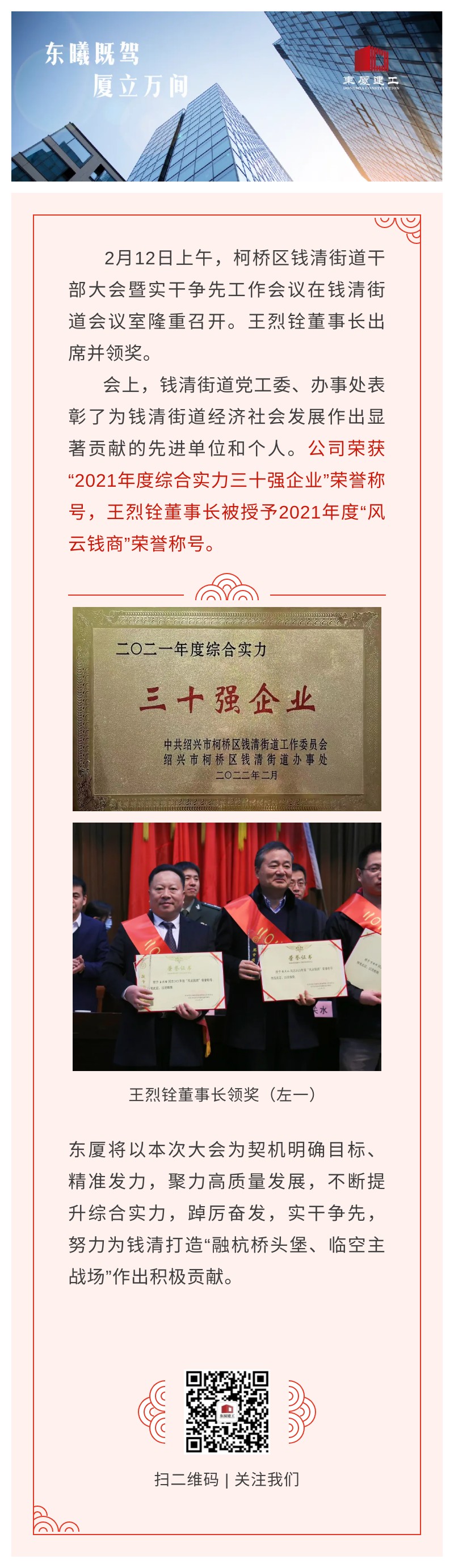 開拓進(jìn)取 實(shí)干爭(zhēng)先 | 公司榮膺錢清街道綜合實(shí)力三十強(qiáng)企業(yè)榮譽(yù)稱號(hào)