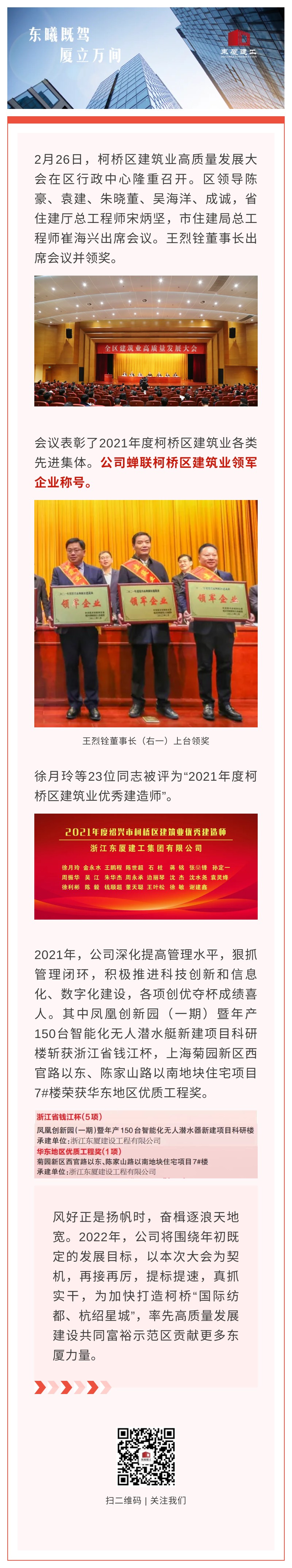 提標(biāo)提速 實(shí)干實(shí)績(jī) | 公司蟬聯(lián)柯橋區(qū)建筑業(yè)領(lǐng)軍企業(yè)稱號(hào)