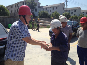 近日氣溫節(jié)節(jié)攀升,酷暑考驗著堅守在浙江東廈公司的一線職工,更牽動著公司領導的心。7月31日,公司領導王董、朱總、施副總等一行帶著防暑降溫慰問品來到嵊州和悅時代廣場悅公館、紹興佳源廣場、濱海新城醫(yī)療器械科技產業(yè)園、柯橋中銀國際大廈等工地現(xiàn)場,親切慰問了堅守在項目部現(xiàn)場的一線職工,詢問他們在高溫天氣下的工作、生活情況,代表公司對一線職工高溫下堅守崗位、辛勞工作表示肯定和感謝,叮囑職工在當前持續(xù)高溫的不利條件下,做好安全工作的同時,要勞逸結合,注意休息,采取有效的防暑措施,安全順利地度過高溫季節(jié),保質保量的完成工作。領導的一聲聲問候和贊譽,給一線的職工送去了盛夏的縷縷清涼,他們紛紛表示要加倍努力工作,保障自身安全,穩(wěn)定生產運行,為建筑工程事業(yè)獻出自己的力量。