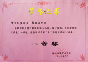 | 2017年3月1日,紹興市建筑系統(tǒng)第二十二屆QC活動成果發(fā)布會于紹興市稽山賓館舉行。在眾多發(fā)布的QC小組成果中,我司中銀國際大廈項(xiàng)目部QC小組成果《探討提高止水后澆帶施工質(zhì)量》榮獲紹興市建筑系統(tǒng)QC成果一等獎,新建北七路二期工程項(xiàng)目部QC小組成果《提高瀝青路面平整度》獲得二等獎。 近年來,我司積極鼓勵項(xiàng)目部針對工程施工過程中的難點(diǎn)、重點(diǎn)及存在的問題進(jìn)行研究、探討,發(fā)揚(yáng)創(chuàng)新精神,大力開展QC小組活動。本次QC小組成果取得的成績也正是給予所有的項(xiàng)目部開展QC小組活動一個好的例子、榜樣。 百尺竿頭,更進(jìn)一步,借此次QC成果取得優(yōu)異成績的契機(jī),我司將創(chuàng)造更為濃厚的科技創(chuàng)新氛圍,積極開展科技創(chuàng)新活動,力爭取得更多、更好、更全面的科技成果!