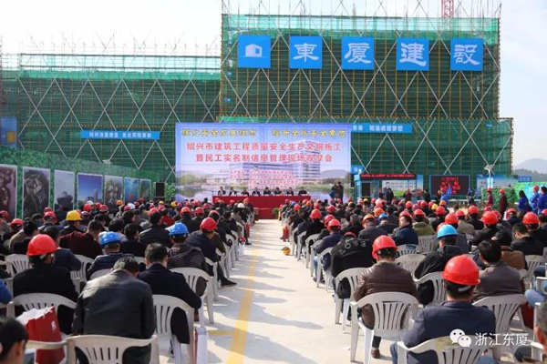 11月24日上午,由紹興市住建局主辦,柯橋區(qū)建管局、鑒湖-柯巖管委會、浙江東廈建設(shè)工程有限公司承辦的紹興市建筑工程質(zhì)量安全生產(chǎn)文明施工暨民工實名制信息管理現(xiàn)場觀摩會在我司鳳凰創(chuàng)新園項目部順利召開。參加會議的有紹興市住建局領(lǐng)導(dǎo)、柯橋區(qū)政府領(lǐng)導(dǎo)、柯橋區(qū)建管局領(lǐng)導(dǎo)、柯橋鑒湖柯巖管委會領(lǐng)導(dǎo)、各區(qū)、縣(市)建設(shè)(建管)局分管質(zhì)量安全副局長、質(zhì)監(jiān)安監(jiān)站的負責(zé)人、建設(shè)單位領(lǐng)導(dǎo);各區(qū)、縣(市)特、一級資質(zhì)以上施工企業(yè)、甲級監(jiān)理企業(yè)負責(zé)人代表、市區(qū)所有在建工程項目經(jīng)理;2017年度發(fā)生過安全生產(chǎn)事故的企業(yè)負責(zé)人、項目經(jīng)理,共500余人參加了此次會議。