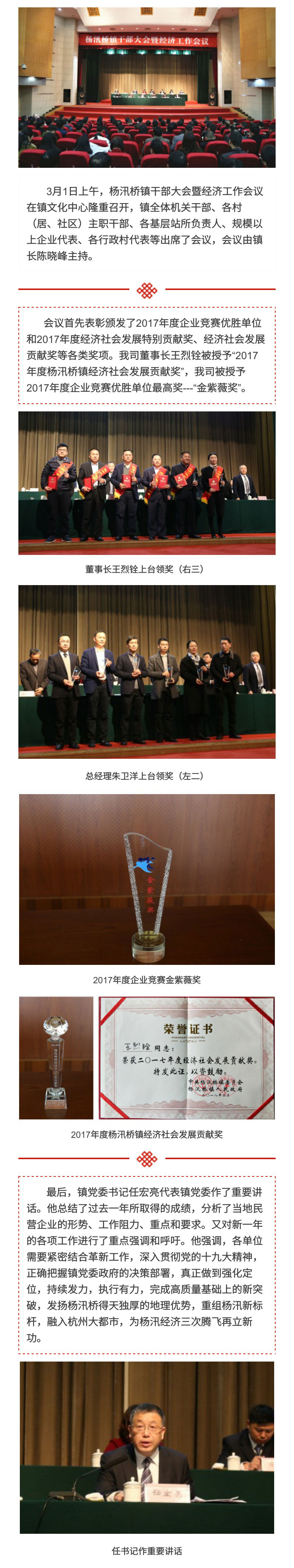 我司再次獲得楊汛橋鎮(zhèn)“金紫薇獎”,公司董事長王烈銓榮獲楊汛橋鎮(zhèn)經(jīng)濟(jì)社會發(fā)展貢獻(xiàn)獎