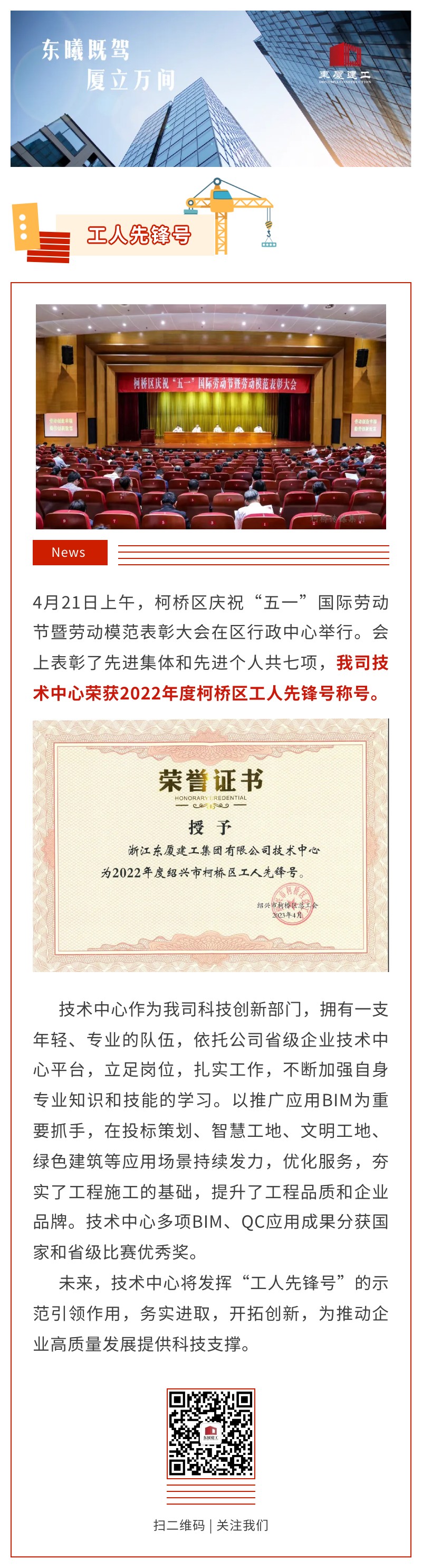 喜訊!我司技術(shù)中心榮獲柯橋區(qū)工人先鋒號(hào)稱(chēng)號(hào)