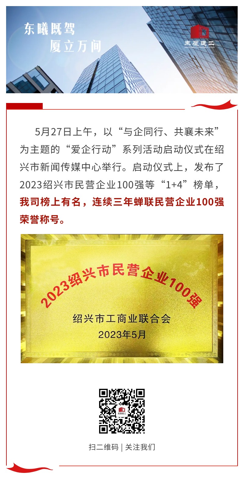 【東廈榮譽(yù)】公司榮膺2023紹興市民營企業(yè)100強(qiáng)