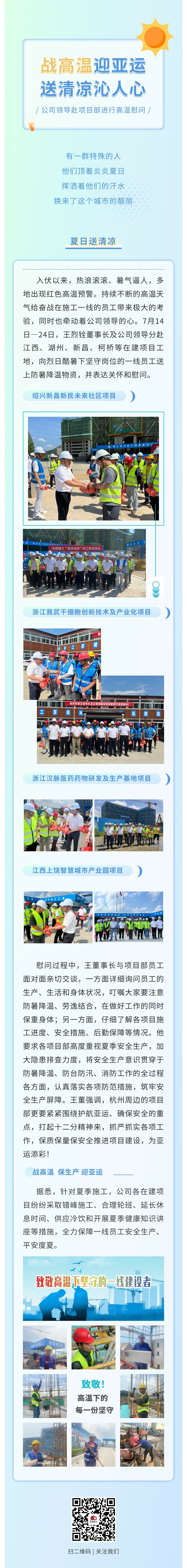 戰(zhàn)高溫迎亞運 送清涼沁人心 I 王烈銓董事長率隊赴項目部開展高溫慰問