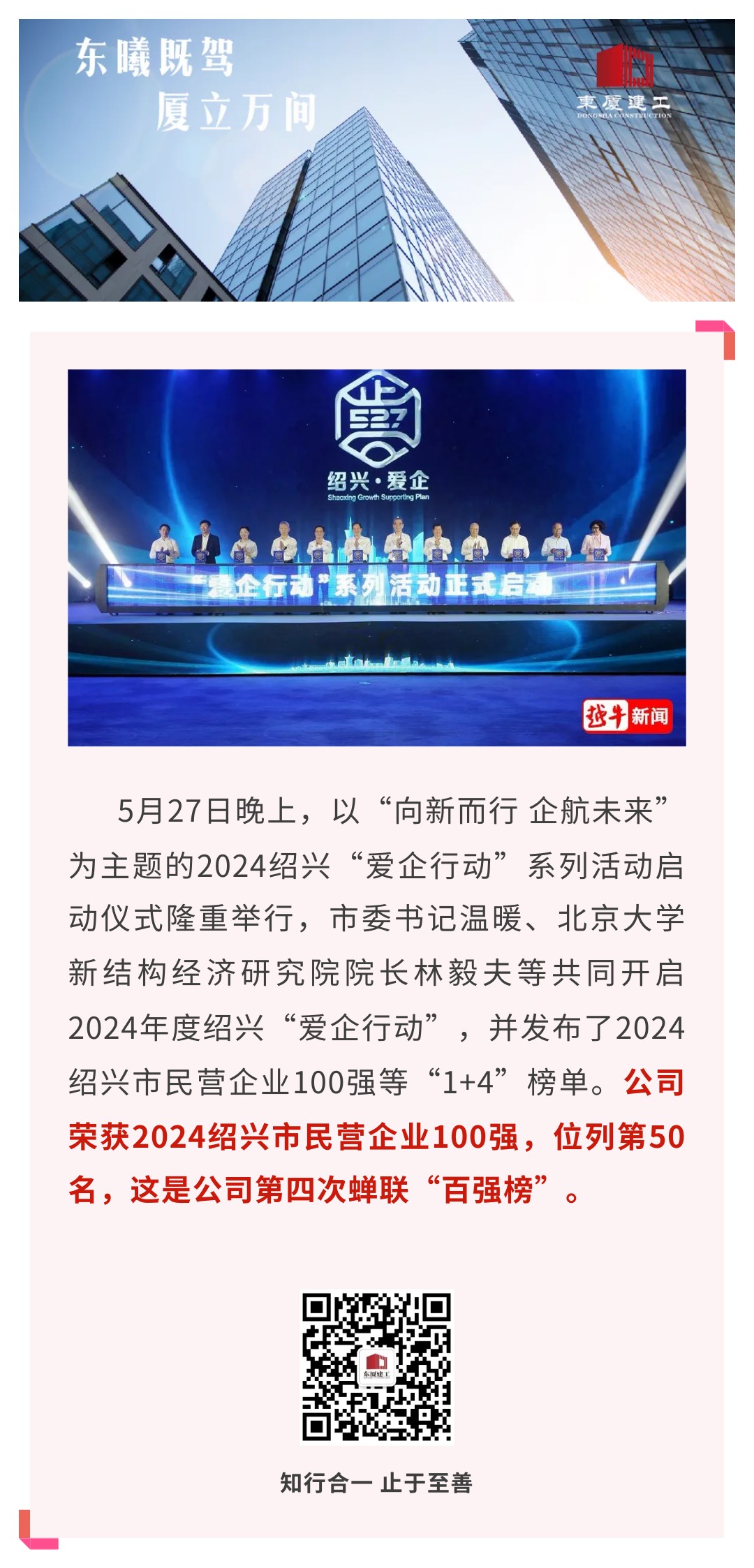 【東廈榮譽】公司四次蟬聯“紹興市民營企業(yè)100強”