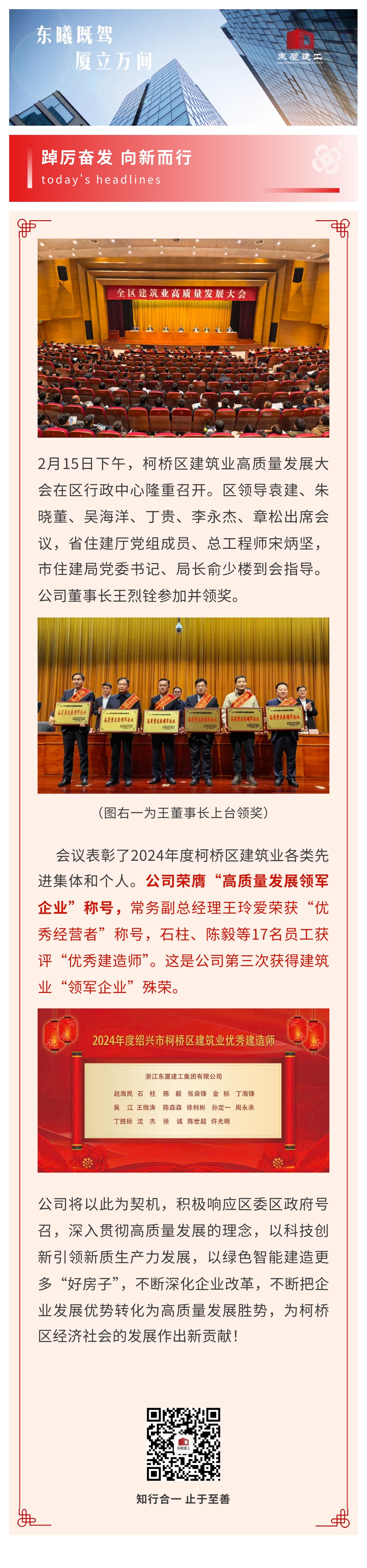 【東廈榮譽(yù)】公司榮膺“柯橋區(qū)建筑業(yè)高質(zhì)量發(fā)展領(lǐng)軍企業(yè)”