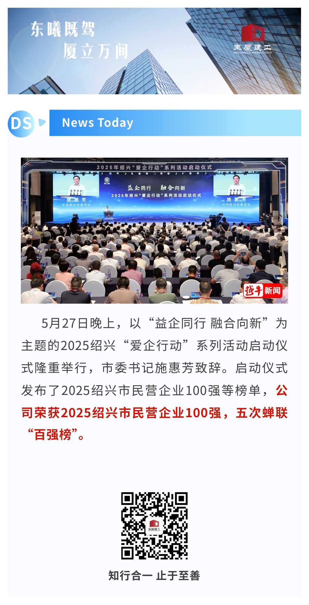 【東廈榮譽】公司五次蟬聯(lián)“紹興市民營企業(yè)100強”